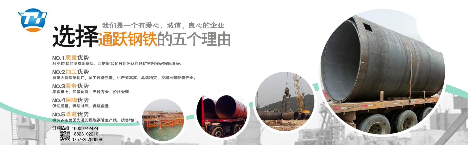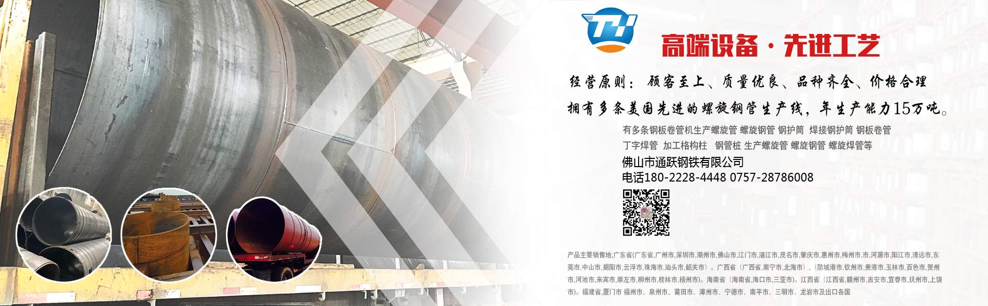 佛山市通躍鋼鐵有限公司 電話180-2228-4448 0757-28786008 擁有多條美國先進的螺旋鋼管生產(chǎn)線,生產(chǎn)直徑φ159-φ3620mm(壁厚6mm-20mm)的雙面埋弧螺旋焊鋼管,年生產(chǎn)能力15萬噸。 生產(chǎn)螺旋管 螺旋鋼管 螺旋焊管 規(guī)格厚度6mm-20mm 直徑159mm-3620mm 有多條鋼板卷管機生產(chǎn)規(guī)格厚度6mm-70mm 直徑400mm-5020mm 螺旋管 螺旋鋼管 鋼護筒 焊接鋼護筒 鋼板卷管 丁字焊管 加工格構(gòu)柱 鋼管樁 材質(zhì)Q235B Q345B Q235A 45# 20# Q420D Q390··· ……